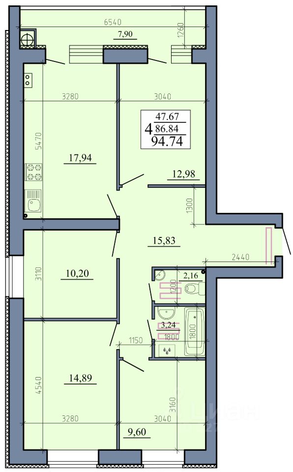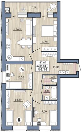 Великолепная четырехкомнатная квартира европланировки площадью 94,74 кв.м, идеально подходит для комфортного проживания большой семьи. Эта квартира сочетает в себе современный дизайн и практичную планировку, обеспечивая максимум удобства и уюта.