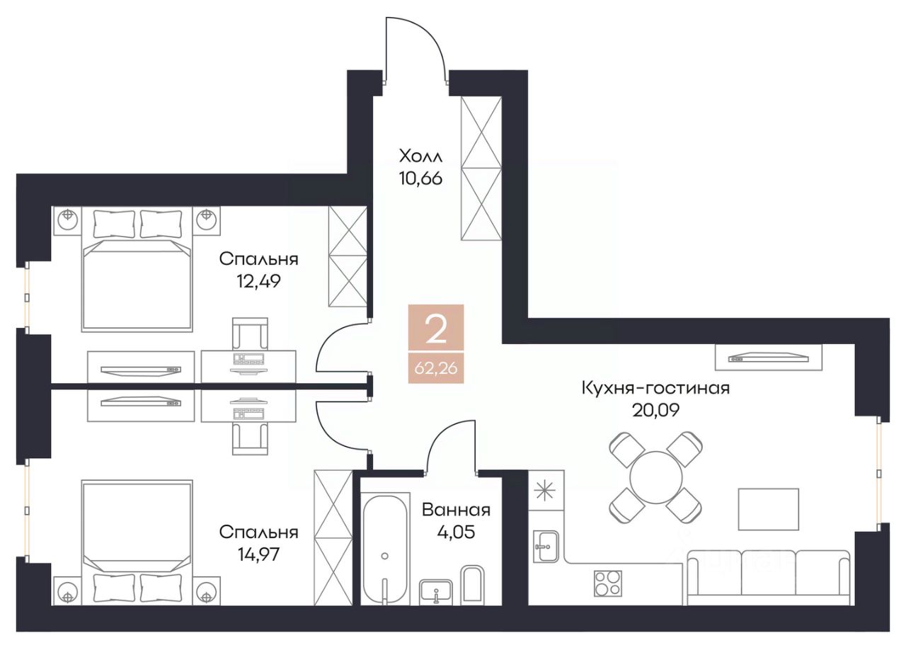 Общая площадь62,26 м²