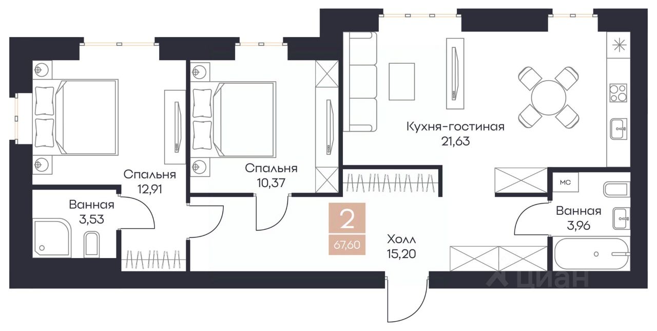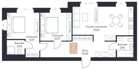Общая площадь67,6 м²