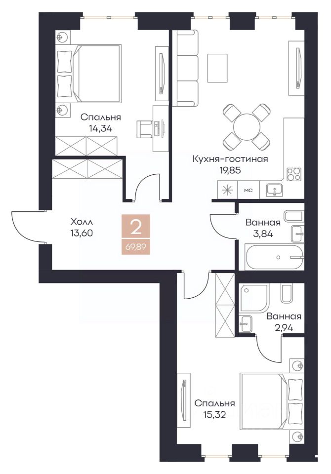 Общая площадь69,89 м²
