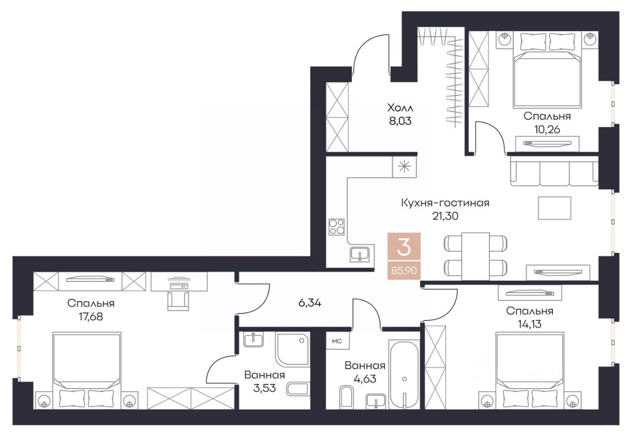 Общая площадь85,9 м²