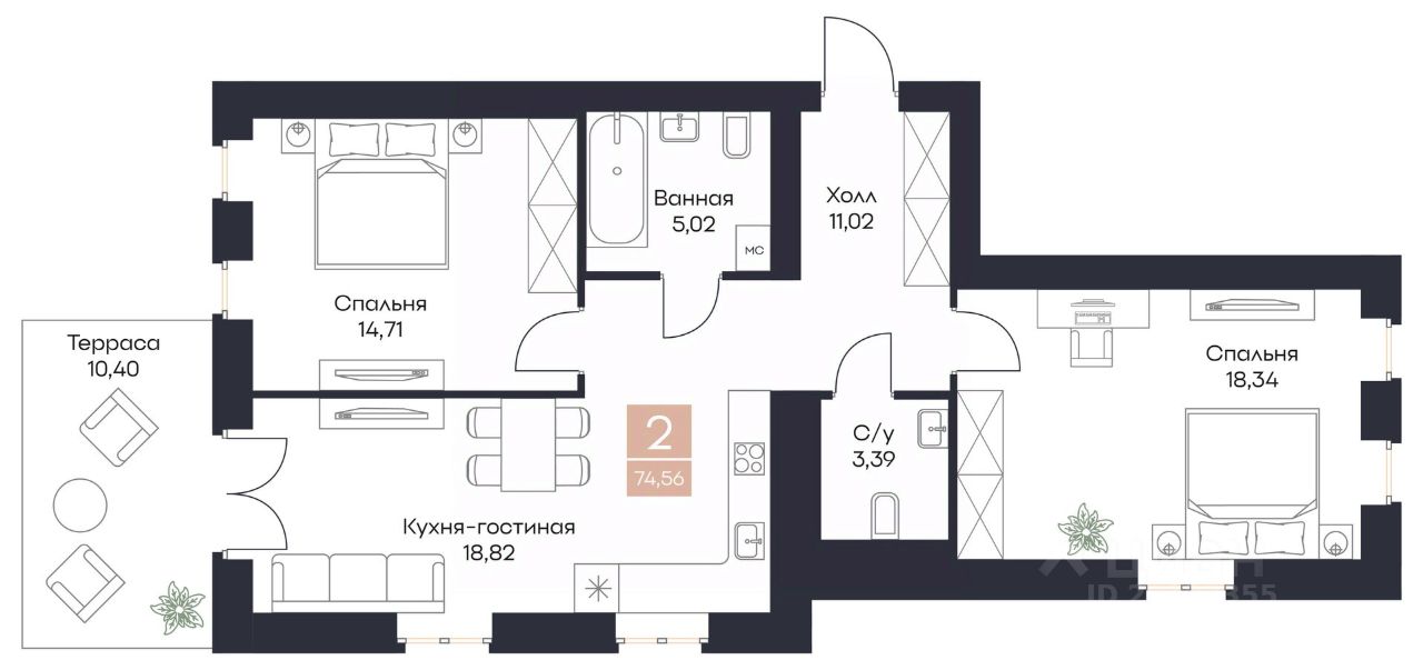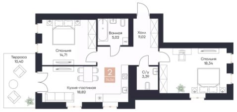 Общая площадь74,56 м²