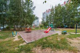 Квартира расположена в спокойном районе города, где есть всё необходимое для комфортной жизни: магазины, школы, детские сады и остановки общественного транспорта. Во дворе дома имеется наземная парковка.