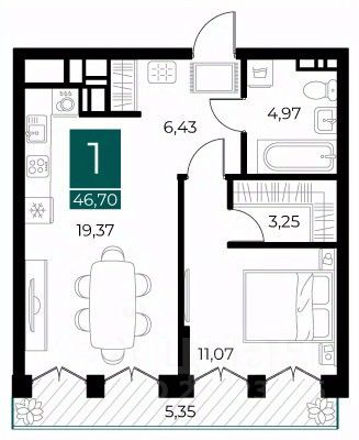 Общая площадь46,7 м²