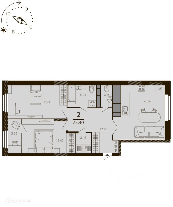 75,4 м²