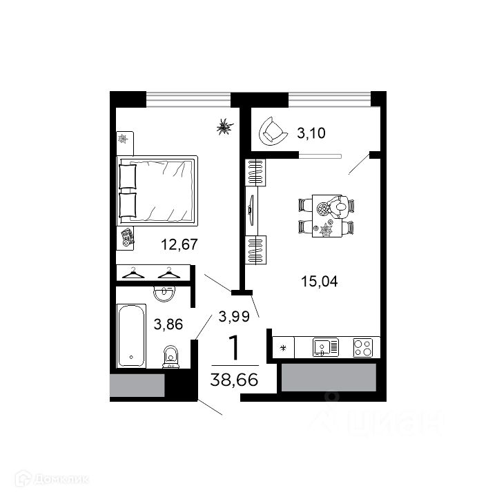 38,66 м²