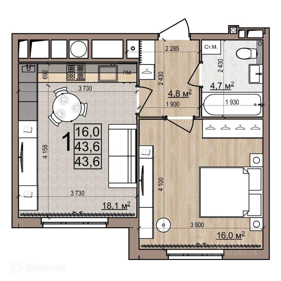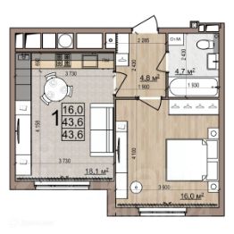 45,7 м²
