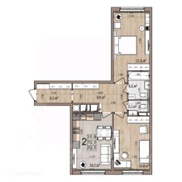 2 комн. квартира в ЖК Еврокласс-5, площадь 72.4 м², жилая 31.8 м², кухня 16.7 м²