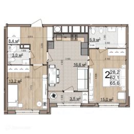Общая площадь65,6 м²