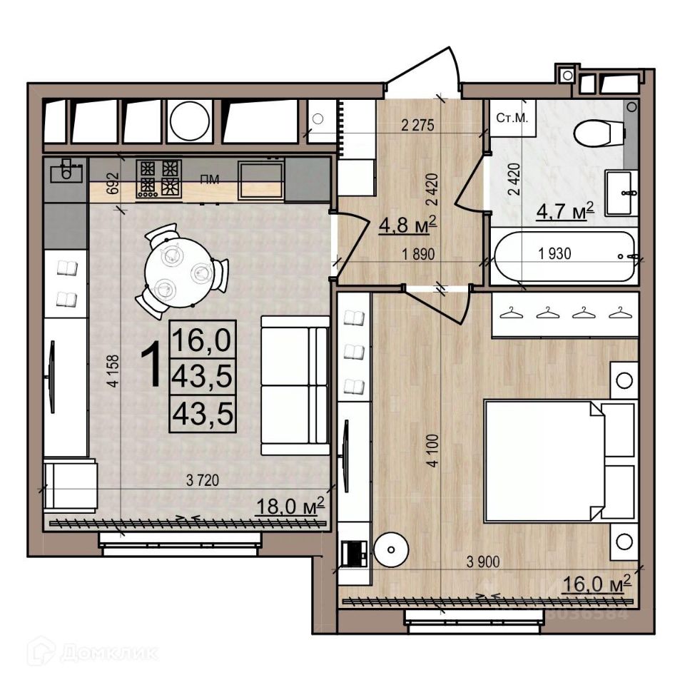 16 м²