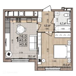 43,6 м²