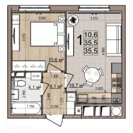 1 комн. квартира в ЖК Еврокласс-5, площадь 35.5 м², жилая 10.6 м², кухня 16.7 м²