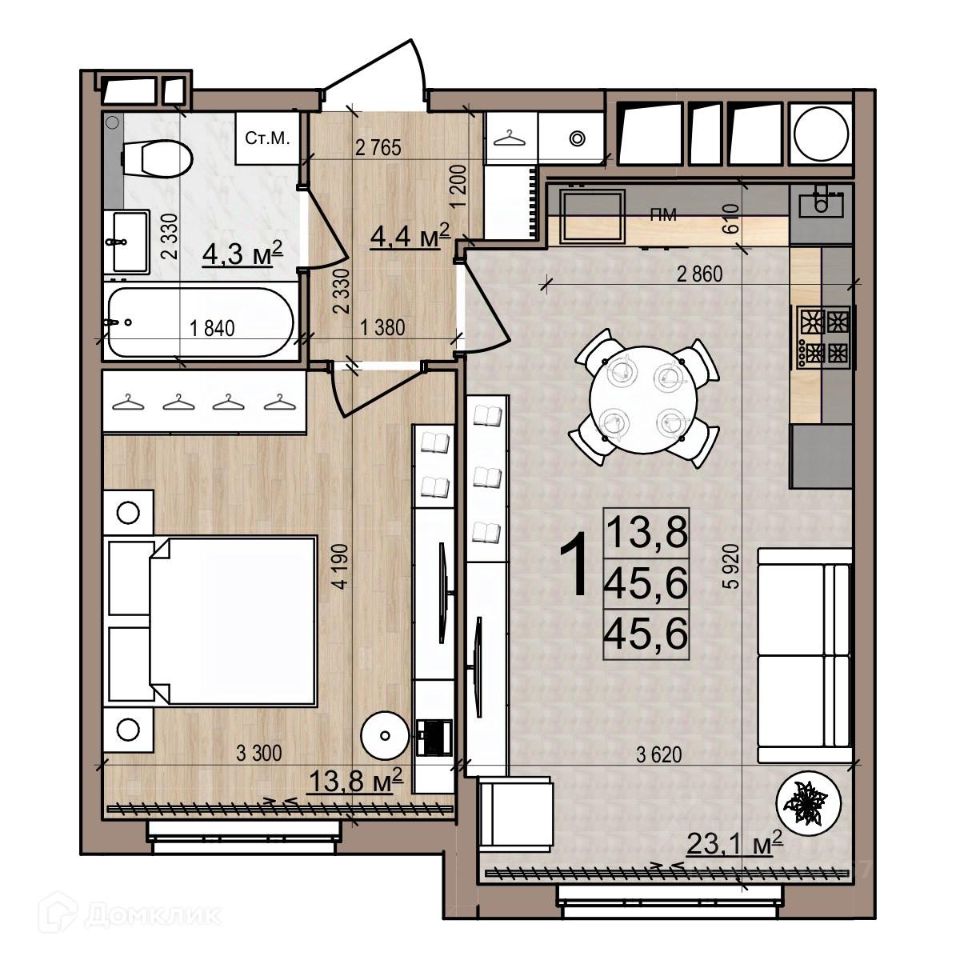 23,1 м²