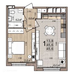 45,8 м²