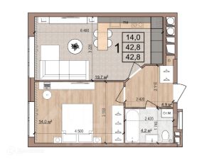 Общая площадь42,8 м²