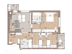 2 комн. квартира в ЖК Skyline (Скайлайн), площадь 76.6 м², жилая 33.9 м², кухня 19.3 м²