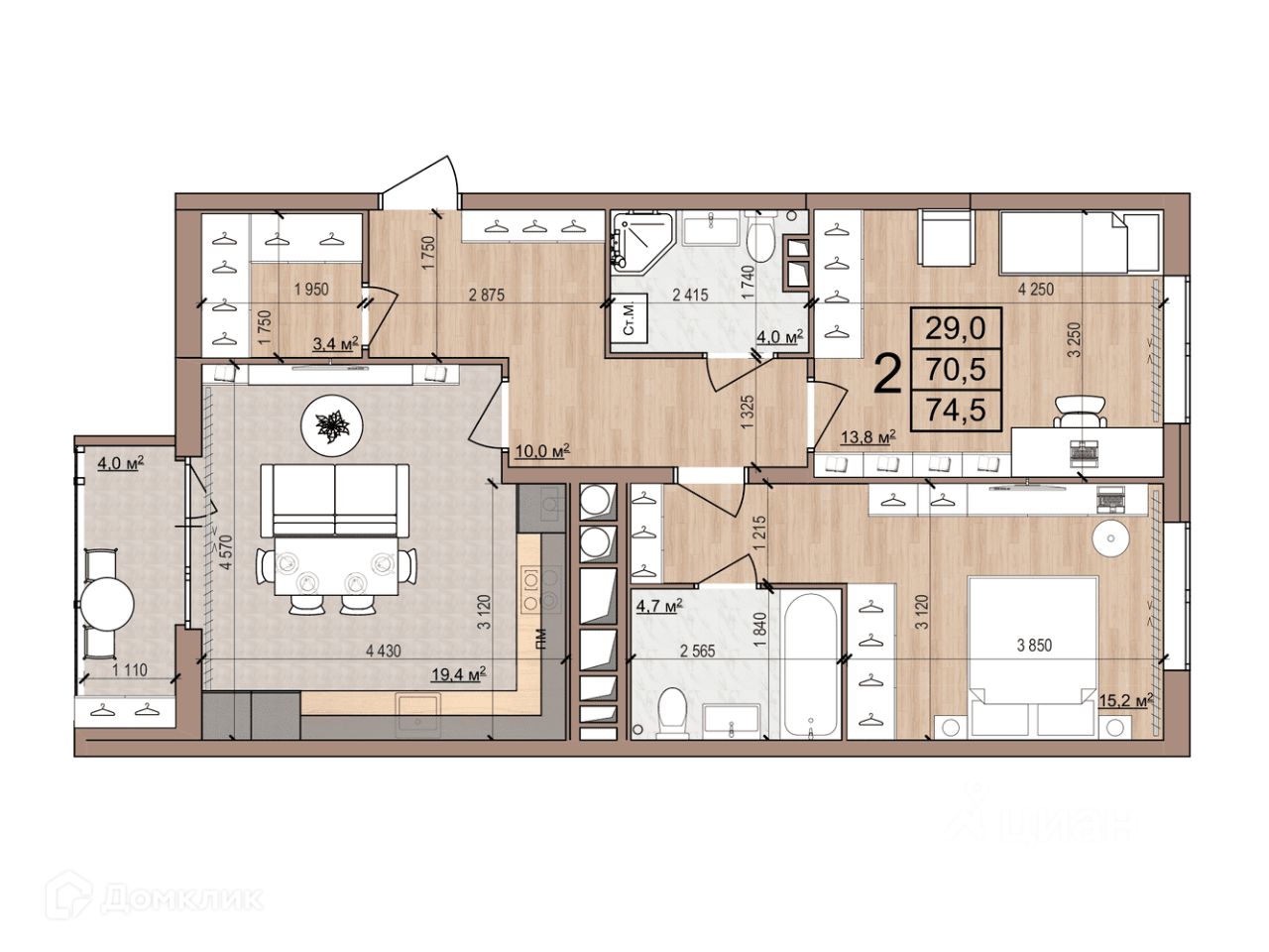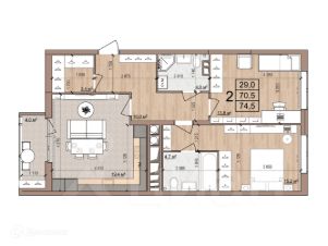 74,5 м²