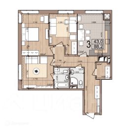 Жилая площадь43 м²
