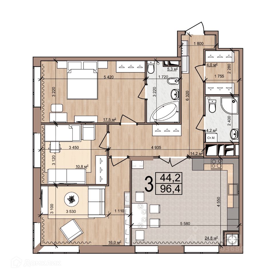 96,4 м²