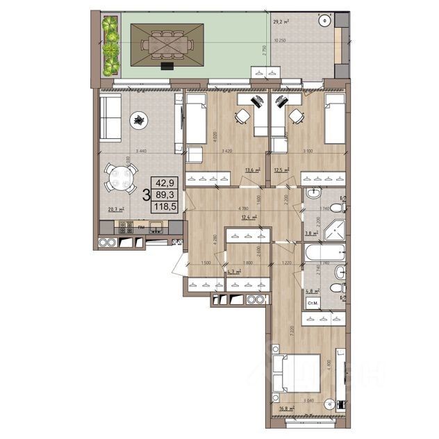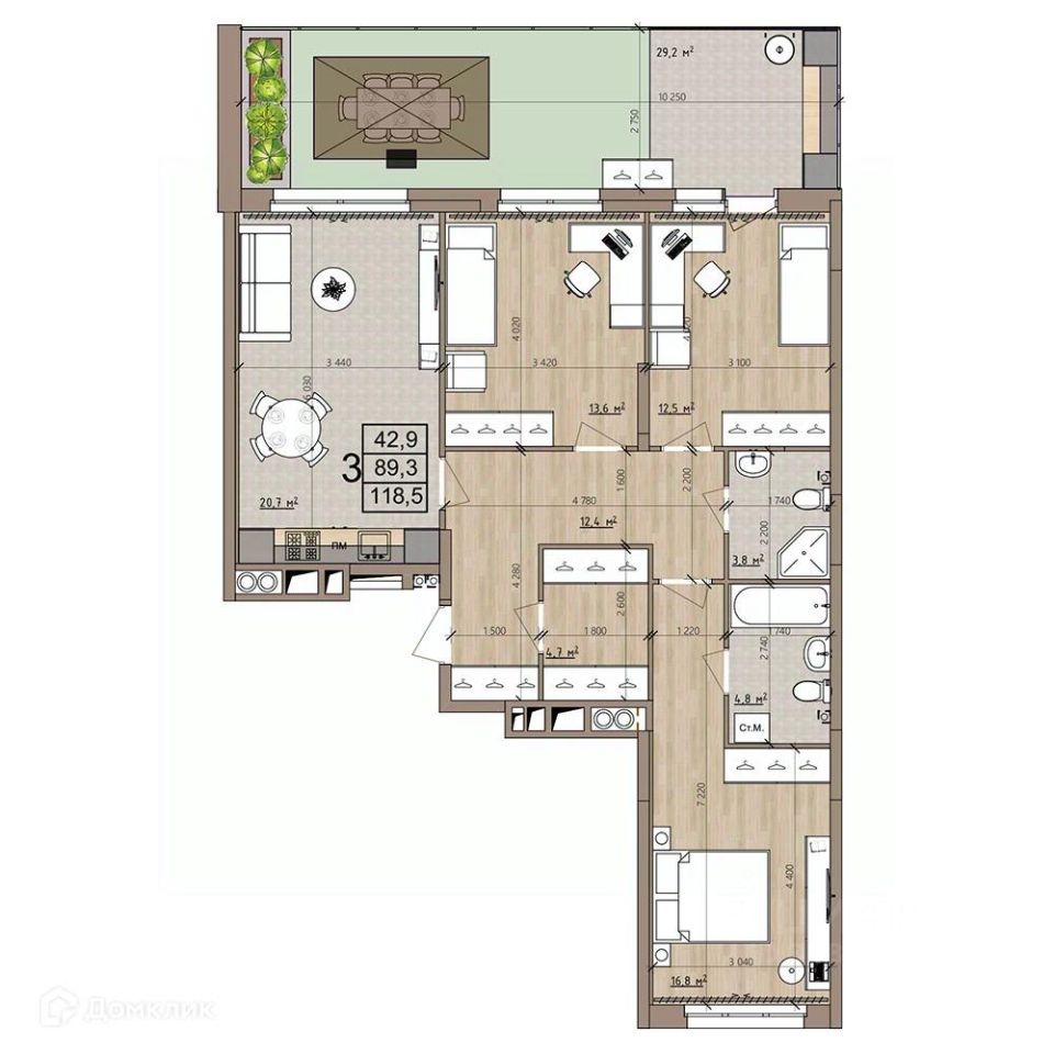 118,5 м²