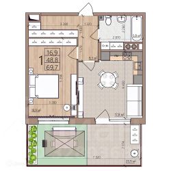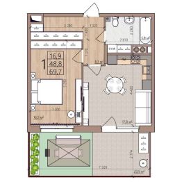 69,7 м²