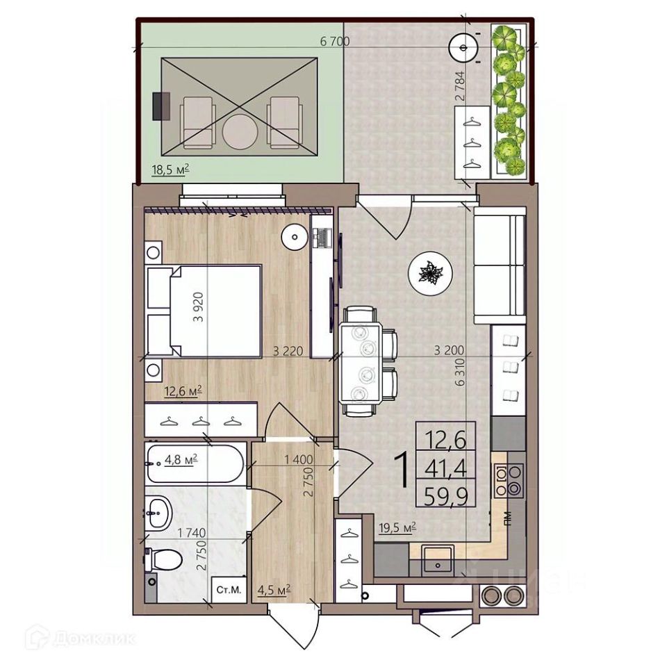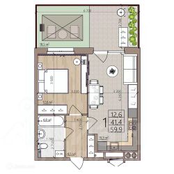 59,9 м²