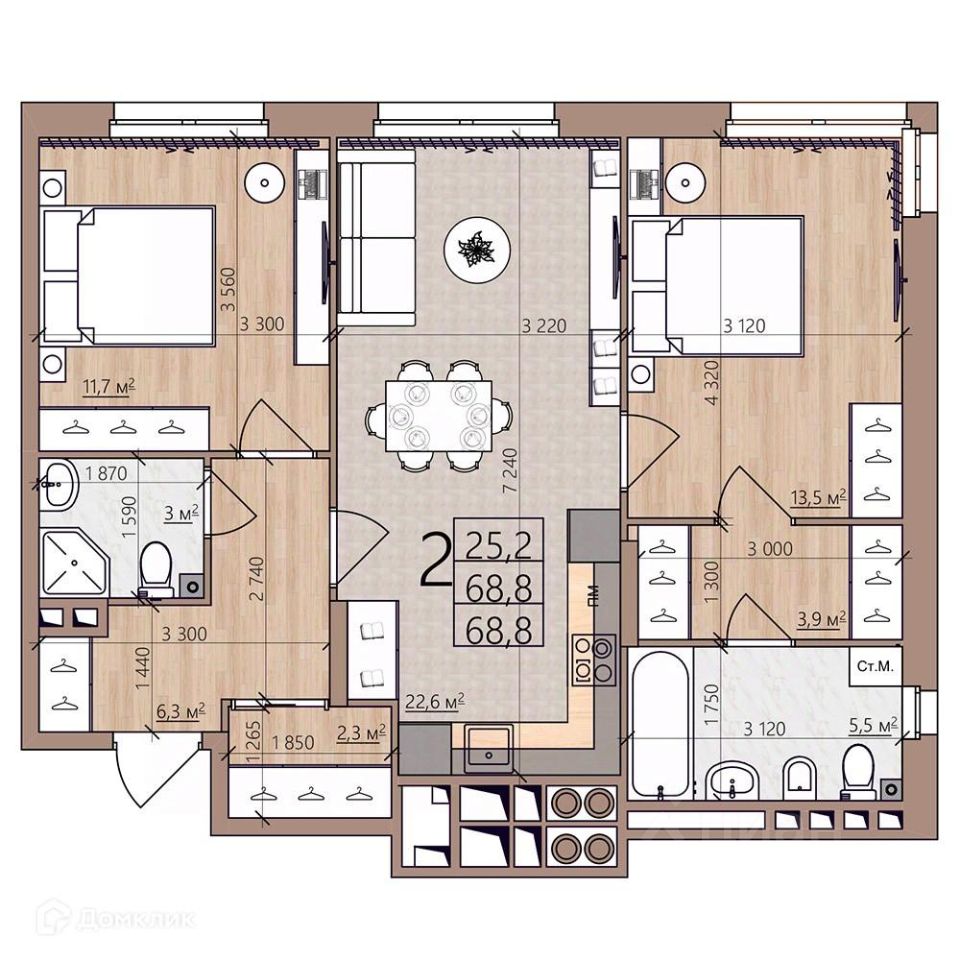 68,8 м²