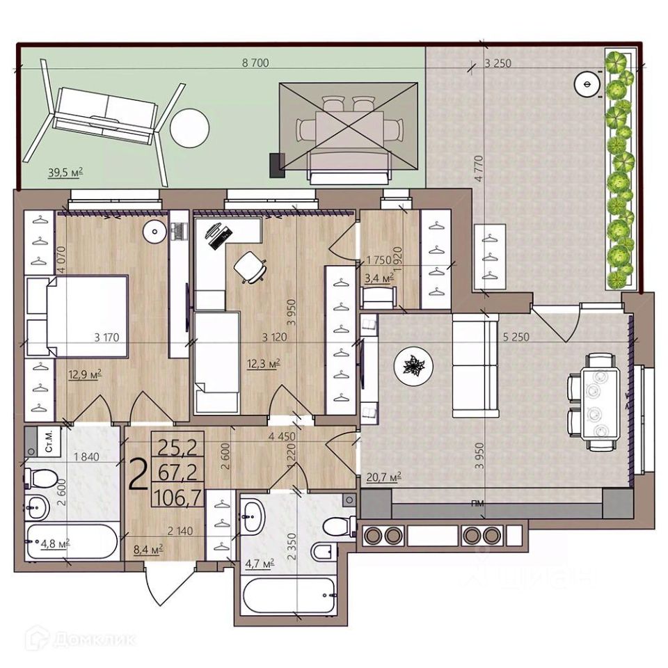 Общая площадь106,7 м²