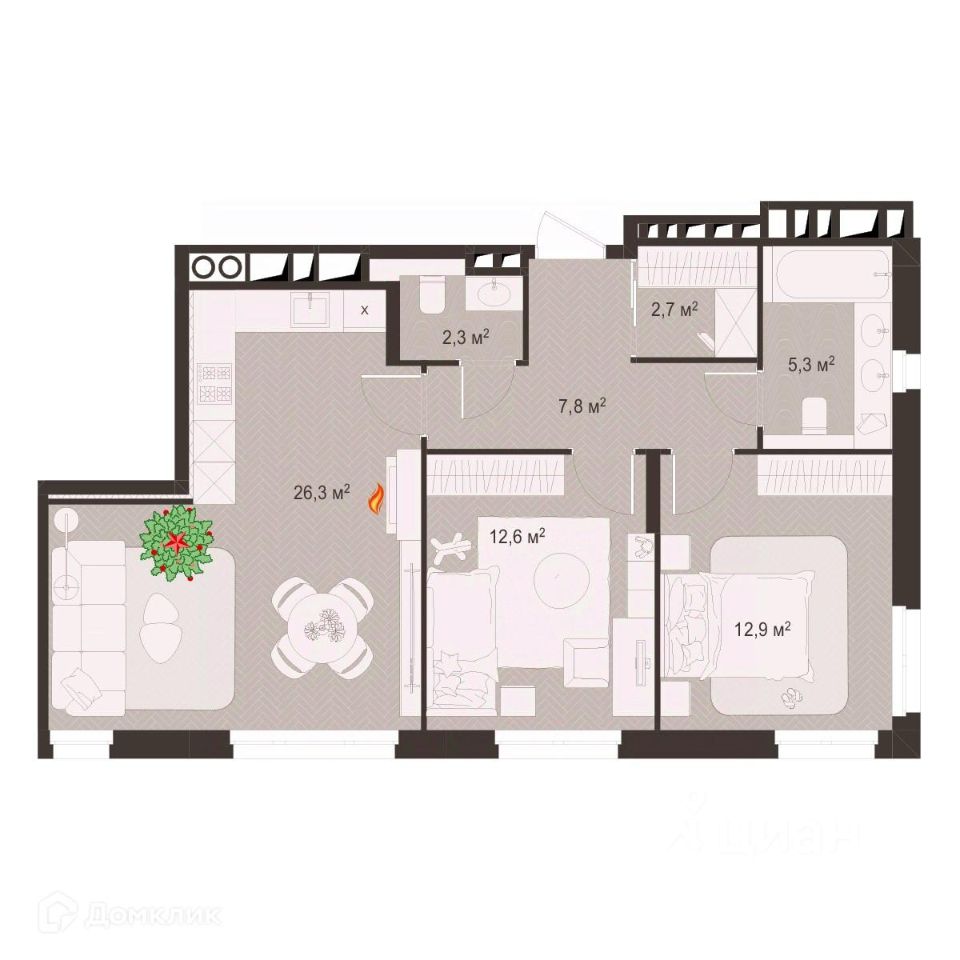 26,3 м²