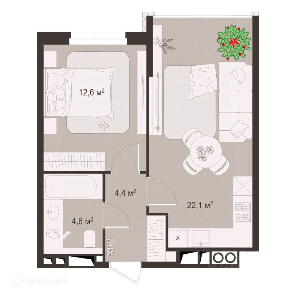 12,6 м²