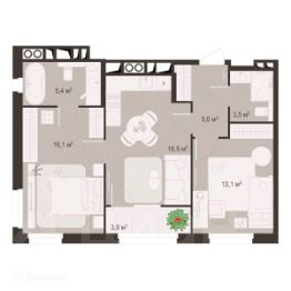 2 комн. квартира в ЖК Окская стрелка, площадь 63 м², жилая 29.2 м², кухня 16.5 м²