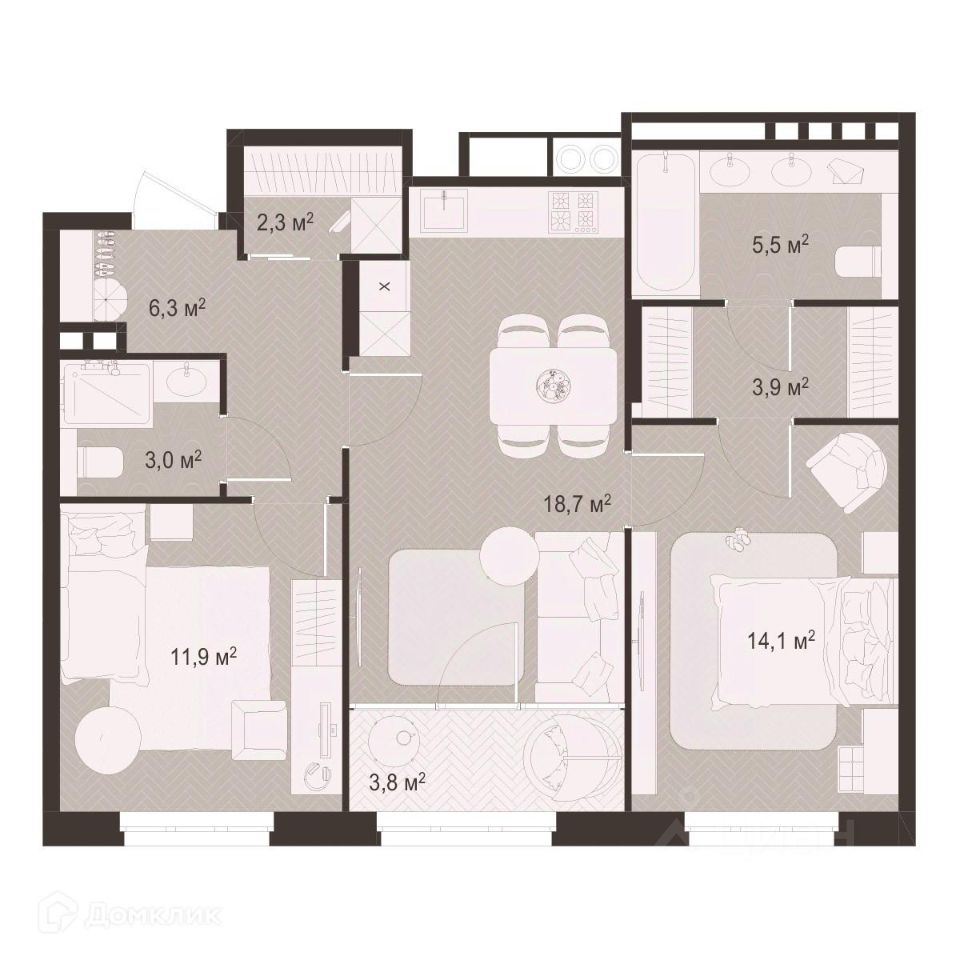 69,5 м²