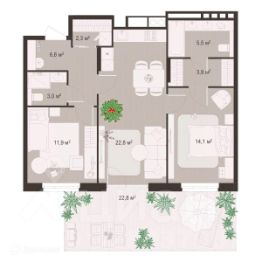 22,8 м²