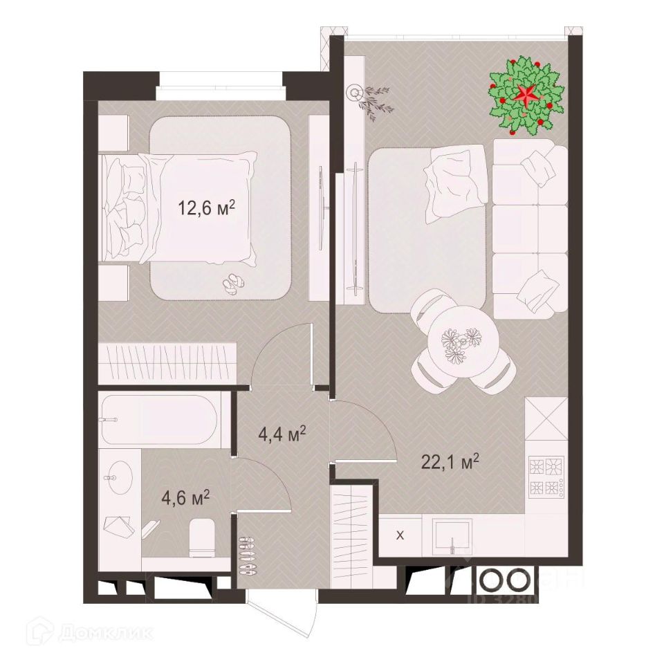 Жилая площадь12,6 м²