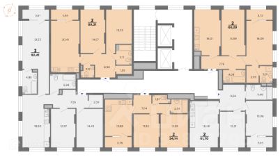 3 комн. квартира в ЖК Нобель, площадь 92.41 м², жилая 48.93 м², кухня 18.9 м²