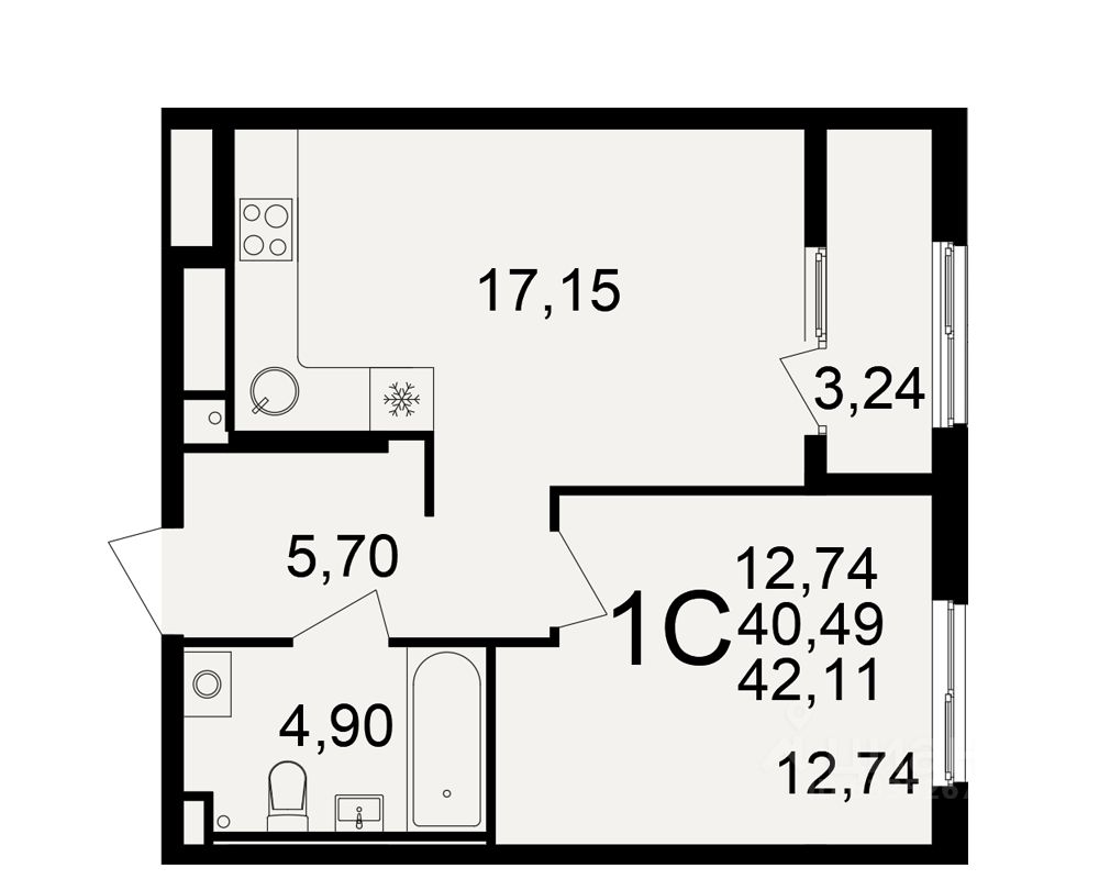 Общая площадь40,49 м²