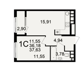 Общая площадь36,18 м²