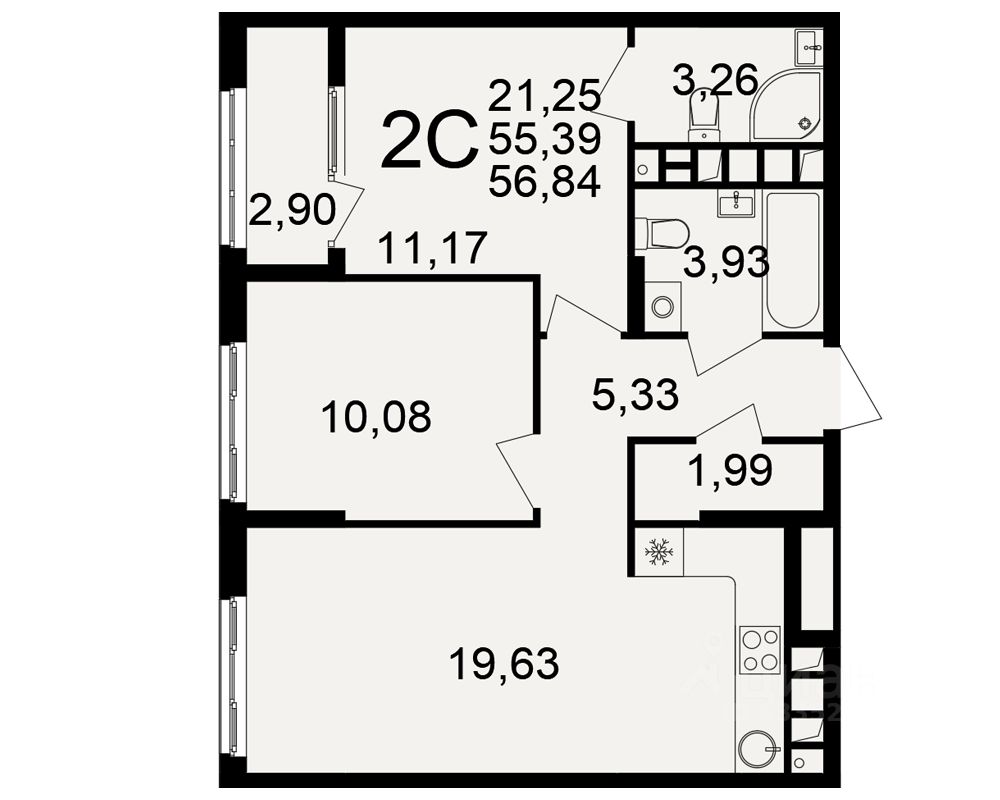 Продается 2-комн. квартира, 55,39 м²