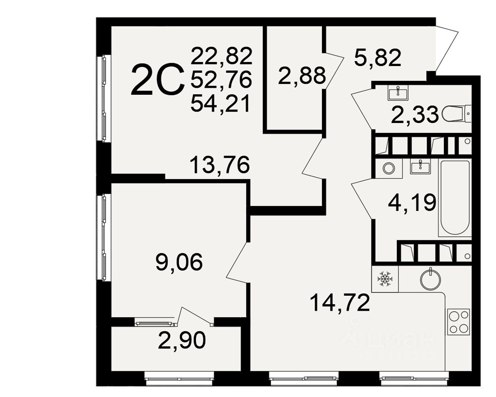 Общая площадь52,76 м²
