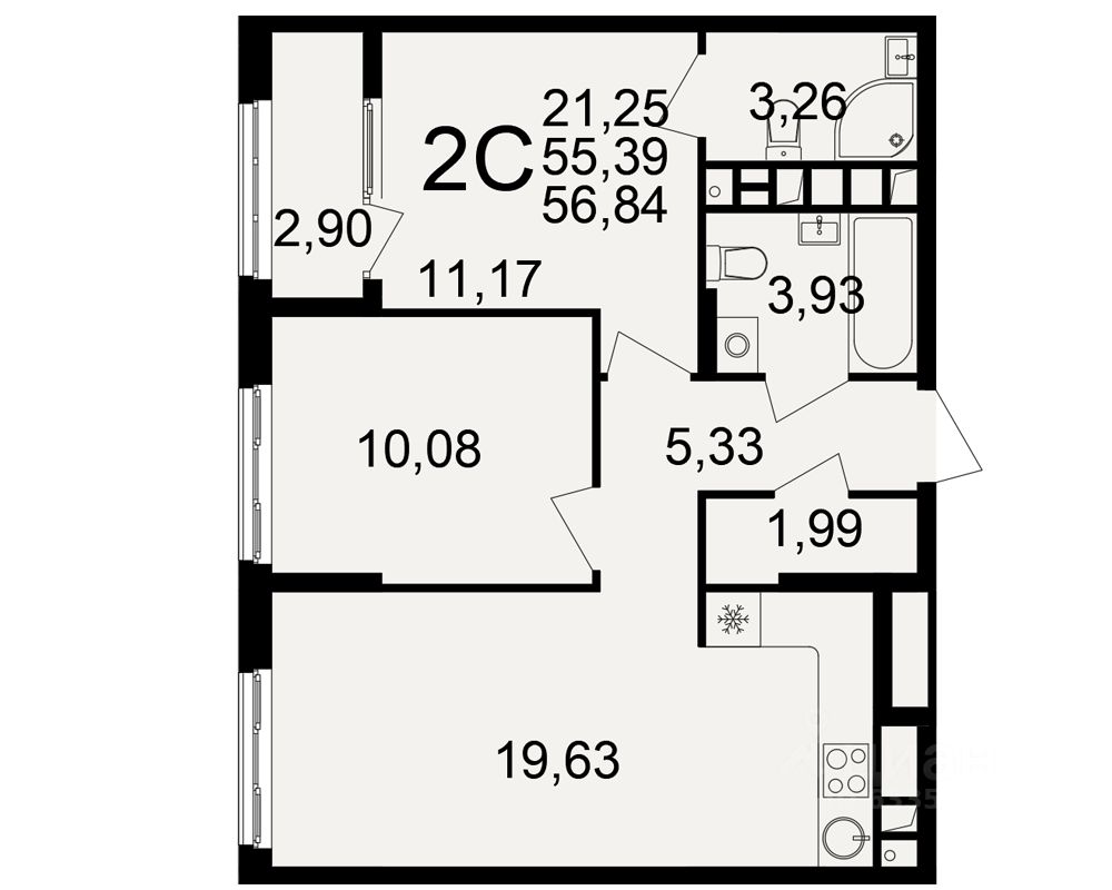 Продается 2-комн. квартира, 55,39 м²