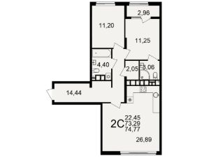 Продается 2-комн. квартира, 73,29 м²