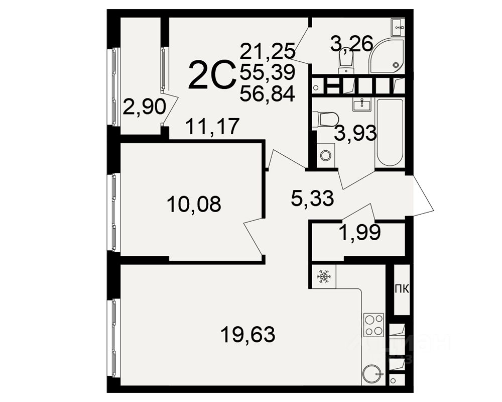 Продается 2-комн. квартира, 55,39 м²