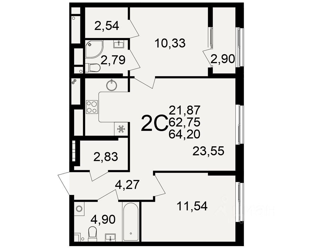 Общая площадь62,75 м²