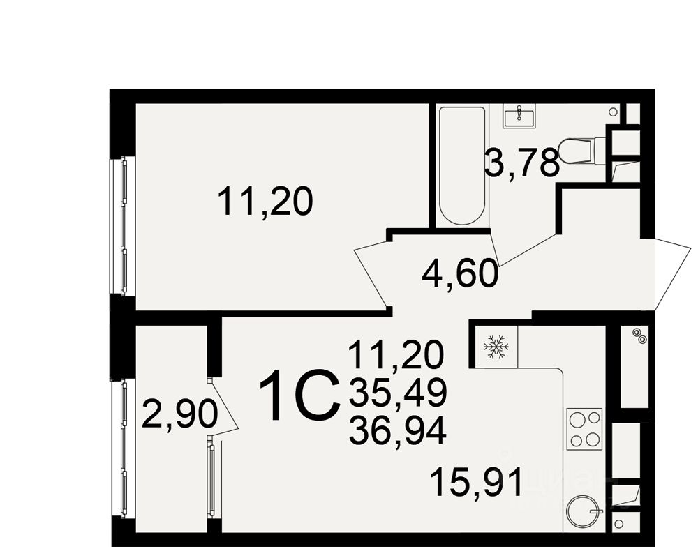 Жилая площадь11,2 м²