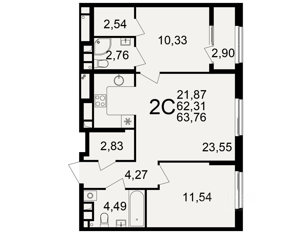 Продается 2-комн. квартира, 62,31 м²
