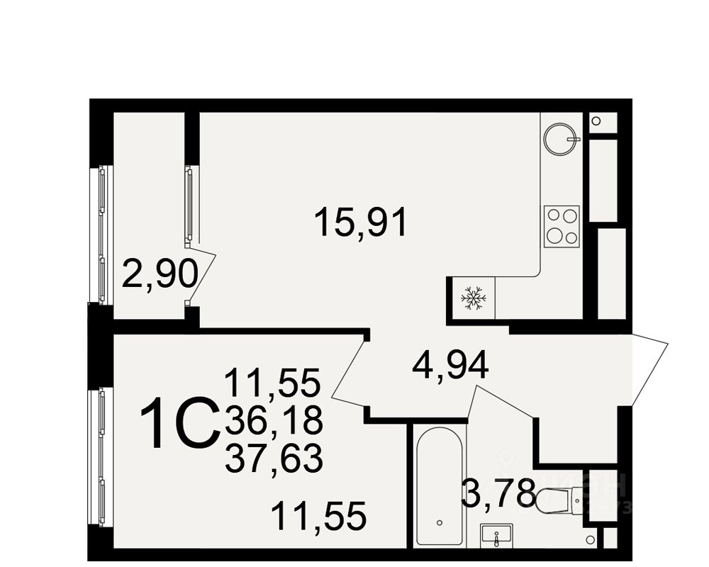 Общая площадь36,18 м²
