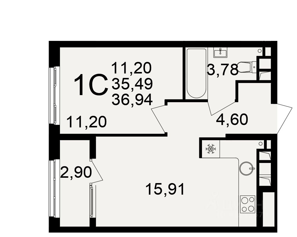 Общая площадь35,49 м²