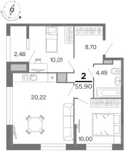 Продаётся 2-комнатная квартира в строящемся доме (Дом 4), срок сдачи: IV-кв. 2029, общей площадью 55.9 кв.м., на 7 этаже. Новый современный жилой комплекс комфорт-класса с прилегающей парковой территорией и уникальной архитектурой. Жилой комплекс гармонирует с зеленой зоной - район застройки расположен в непосредственной близости от березовой рощи и парка им. Гагарина, площадью в 130 тысяч м2. Локация дома располагает к занятиям спортом на свежем воздухе и приятным вечерним прогулкам в тени деревьев.