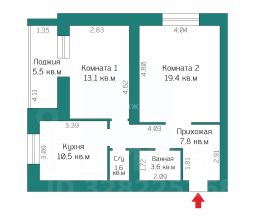 Комнаты 13,1 и 19,4 кв.м. Кухня 10,5 кв.м.