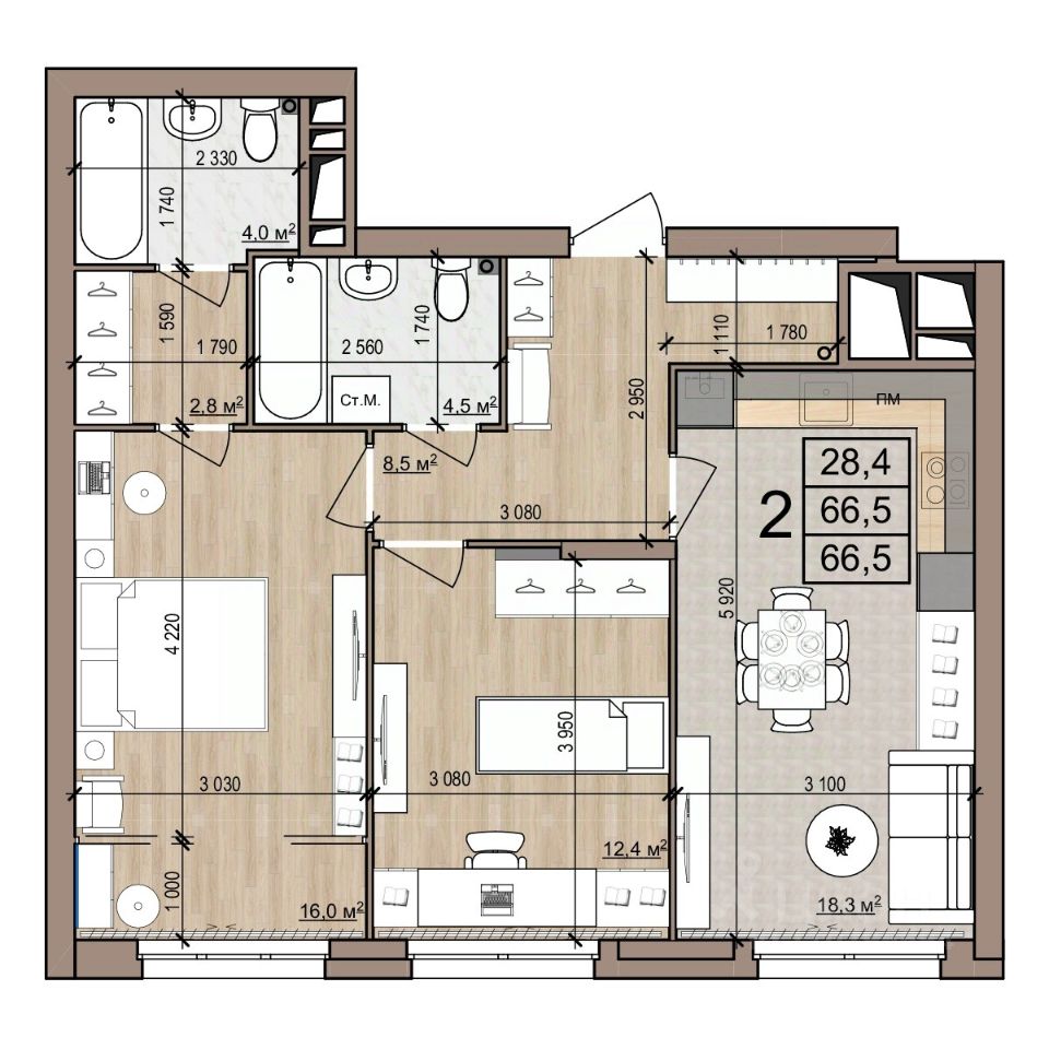 Квартира 47, 2-комнатная в ЖК Полярная звезда от компании "Зеленый сад". Московский район, развитая инфраструктура. Купить квартиру в новостройке в Рязани: 66.5 кв.м., 7 этаж. Кухня — 18.3 кв.м. Ипотека, Trade-In. Подробности на нашем сайте